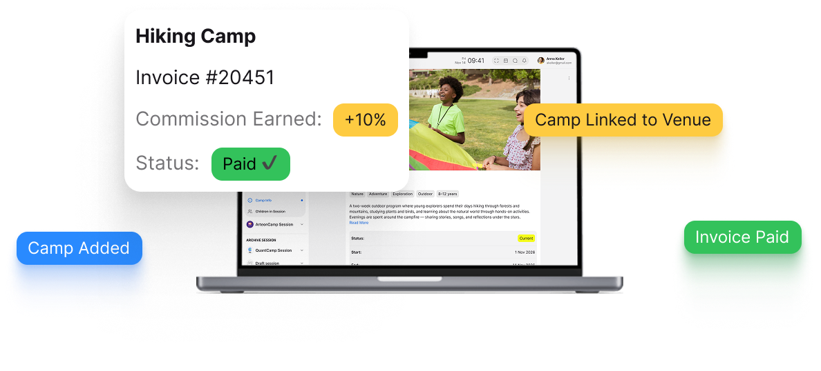 You provide the beds; we provide the technology. By recommending CampOrganizer to your group clients (Retreats, Summer Schools, Sports Camps), you generate a new revenue stream.