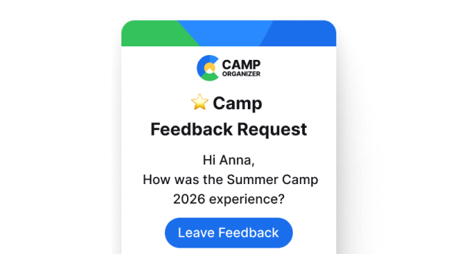 The system automatically emails parents and children after the event to collect NPS and reviews.