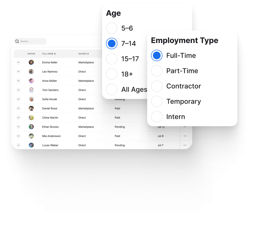 Set rules (e.g., “Only children aged 7-14 of Full-Time Employees”).