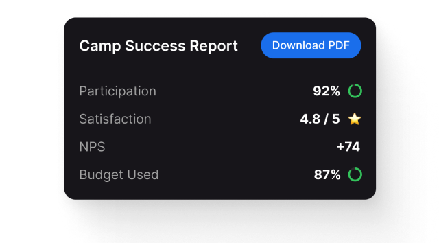 Generate a “Success Report” in one click. Show participation stats, satisfaction scores, and budget utilization.